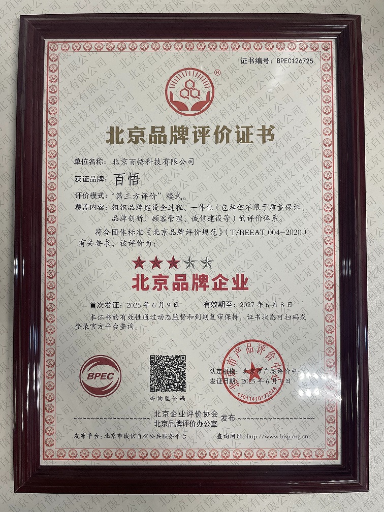 百悟科技入選“北京品牌企業(yè)”,持續(xù)穩(wěn)步提升品牌影響力